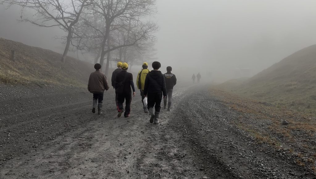 ちなみに下の写真を見てもわかるように早朝の完熟歩行は霧で先が非常に見えづらかったです笑